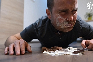 贱狗跪地舔食可爱小美女踩烂的蛋糕!鞋底和脚趾缝里的全舔净!