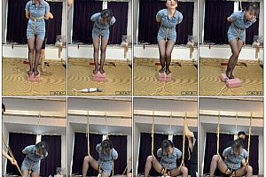 【试炼原创】大长腿小缘全身紧缚股绳放置挣扎+驷马吊环+自己解脱