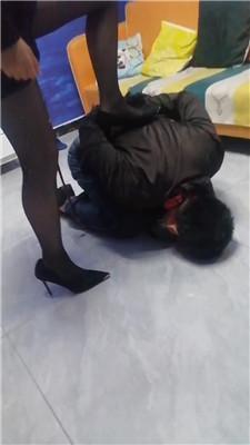 【天韵女皇】反绑高跟踩/鞭打/丝袜塞嘴【双视角版】 JS240716-8