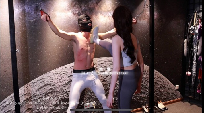 艾琳身着一身瑜伽裤运动椰子鞋,莫吉托s一双厚底白色靴子。双重打击之下,男奴已然是承受不住跪地求饶(真的踢打自闭了,这个男奴兄弟说以后再也不玩了哈哈)