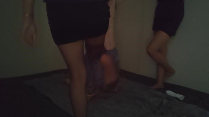 【影片预览及介绍说明】:之前找的技师实在是太棒了,第二天没忍住又联系上了 说有个姐姐可以一起踩。然后就约了双调。穿白袜子的是之前那个技师,腿上的黑丝依然是昨天那双。白袜子也穿了有几天了 有些味道。双人暴力踩踏,各种跳踩,同时在脸上和裆上踏步踩,脚耳光,爆踹,各种踩。最后还有双人踢裆,正面踢,踹,侧面踢
