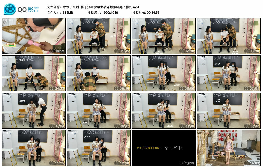 【木木子原创】格子短裙女学生被老师捆绑凳子挣扎