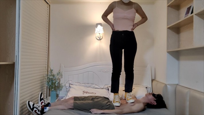 【00后小彤】匡威白袜全体重踩90斤的瘦m YC-220713 2023-12-17 女王踩踏 推广时间: 16:00 踩得是一个19岁的弟弟,体重只有90斤,但是很喜欢被踩,我踩上去的时候他脖子的青筋都突起来了,身上也都踩得全是鞋印。 此内容仅限VIP查看,请先登录 0 0