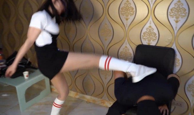 巍巍用木棍打折以后,发现这个色狼竟然晕了。打晕了以后,还打了色狼好几下耳光,然后去给色狼去找药了,没想到。。。找到的竟然又是棍子。。这色狼哪里受得了,但是巍巍又怎么会停下来。将色狼固定在椅子上,继续残忍的羞辱这个色狼。鞋尖直接踢下体、踹下体、大耳光啪啪作响、穿鞋踹头、鞭腿。更多内容欢迎您购买后查看。绝对物超所值!