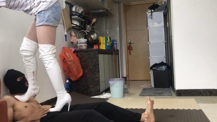 邻家风小鱼姐姐白丝高跟靴子全体重踩奴隶虐待上集