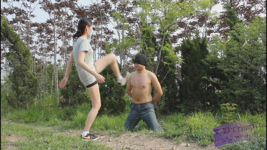 (纯正的原味棉袜,脏鞋子,后来袜子汗水踩在地上也非常脏)小妮主人踢打奴隶锻炼身体,踢裆