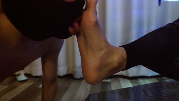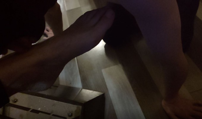 棋棋姐姐躺在按摩椅上看着电视,让狗子按摩脚。