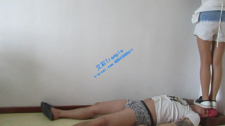 长腿女神帆布鞋踩踏肥仔