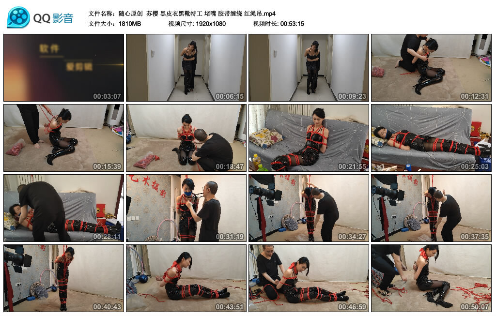 【随心原创】苏樱 黑皮衣黑靴特工 堵嘴 胶带缠绕 红绳吊