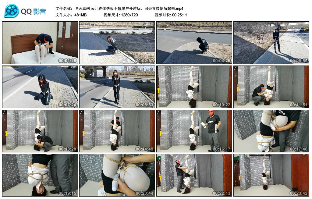 【飞天原创】云儿连体铐极不情愿户外游玩,回去直接倒吊起来