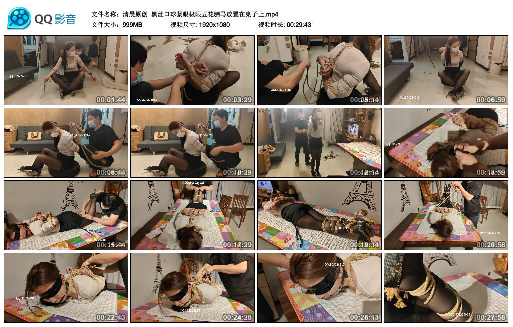 【清晨原创】黑丝口球蒙眼极限五花驷马放置在桌子上
