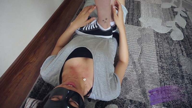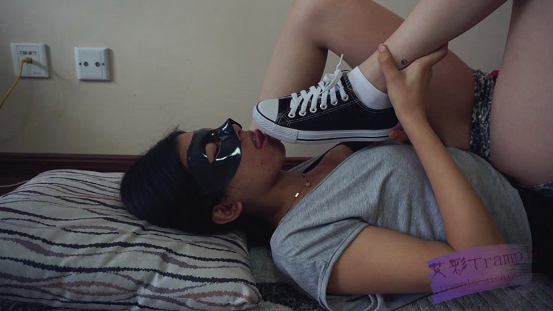 鞋鞋底,把鞋底都舔干净后,让姐姐踩她,还要求姐姐穿帆布鞋插进自己嘴里,玩的很开心。