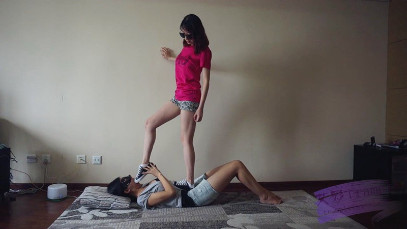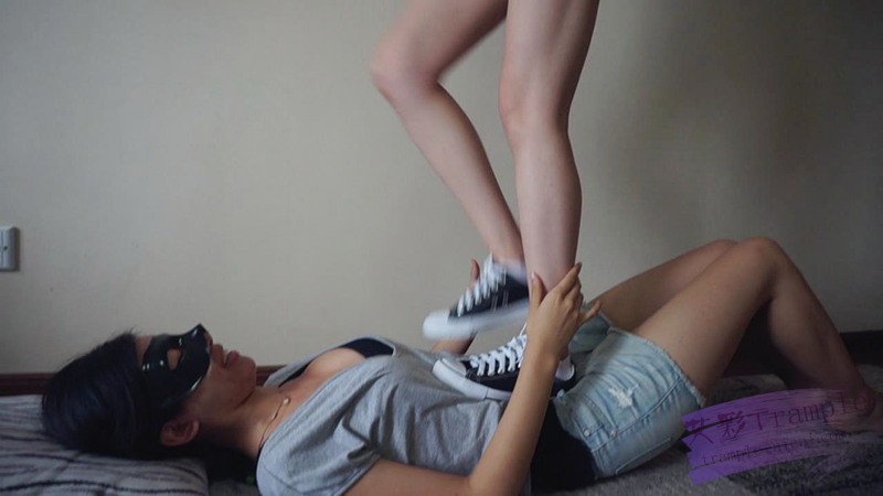 姐姐穿白袜站在妹妹身上踩踏着,妹妹兴奋的享受,看姐姐很开放,就过分要求姐姐穿鞋子踩她,开始并不愿意穿鞋