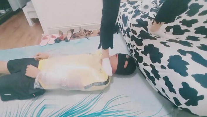 【萤火大人】保鲜膜捆绑/白袜塞嘴/鞭打踢踹/踩脖掐脖窒息