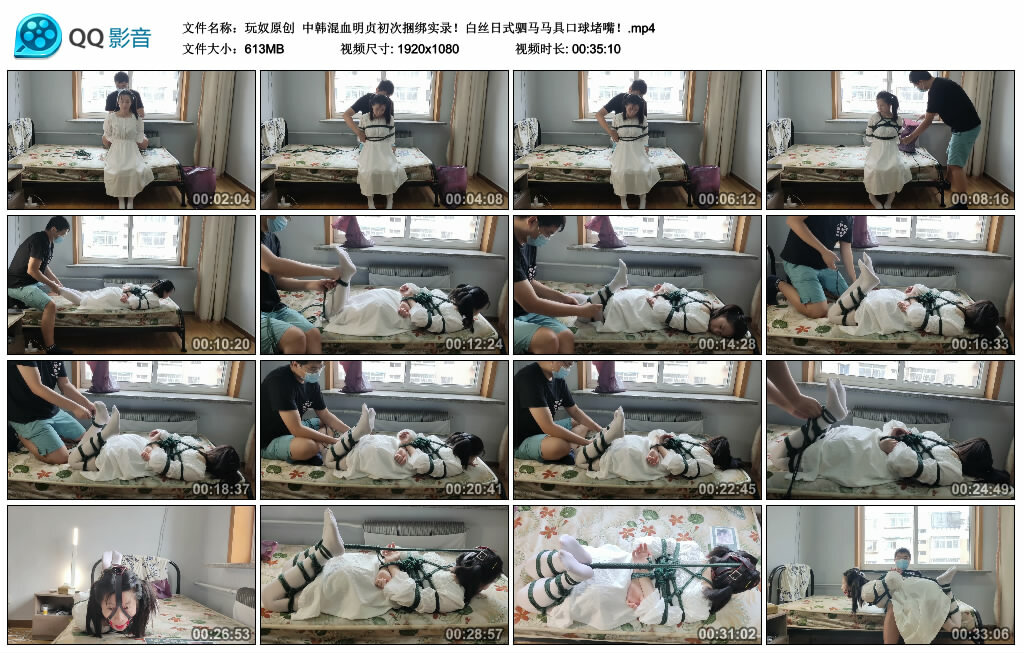 【玩奴原创】中韩混血明贞初次捆绑实录!白丝日式驷马马具口球堵嘴!
