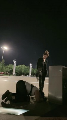 【妮可】夜间户外马路遛狗骑马