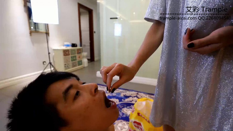 【内容简介】:这部有点重口味哦,芷晴也是真能玩芷晴买来了新的手铐、脚铐,给狗狗戴上。先让他钻跨、玩骑马,还颇具创意的整个人躺在马背上。然后让他学狗听指令(还真挺像的),然后重点来了,吃狗粮,非常贱真的吃,芷晴还让命令把他舌头伸出来,然后把狗粮放在舌头上,再吐一口香痰,吞下去。