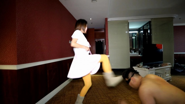 内容:学校小太妹彤彤经常欺负同学,教导主任把她叫到办公室里准备好好教训一顿,不聊尿急就去上厕所,彤彤毫不客气的坐到了主任的位置上,一不小心就发现了主任的秘密。 在主任的文件夹里发现了一些不堪入目的照片 还找到了一双被玷污的丝袜。 黑心小太妹欣喜若狂,在主任回来后以此威胁,主任试图夺回证据,但是彤彤身手矫健,主任根本没机会,只好跪下求饶,彤彤怎么能放过这样的好机会,她羞辱主任,强迫他舔UGG 闻丝袜, 把UGG扣在主任的脸上强迫他闻。 丝袜配ugg 那个臭啊,主任受尽屈辱也没办法,还得舔鞋底,彤彤觉得不过瘾还在鞋底吐痰并且让主任舔,完全激发了主任那下贱的奴性。彤彤趁机拍照打算长期奴役主任。 虽然主任是个下贱的狗奴,但总会条件反射的去管学生的风纪, 彤彤毫无忌惮的点了一根烟 ,主任很自然的就大声呵斥:学生不许吸烟。 结果被彤彤一顿暴踹,然后拿来藤条和皮鞭猛抽,这时候主任才醒过来 ,原来自己是一条狗而已。彤彤的雪地靴又踩裆又踩脖子,狠狠的踹主任的狗头, 最后从凳子上蹦下来连续的跳踩,主任彻底的沦为女学生脚下的贱狗