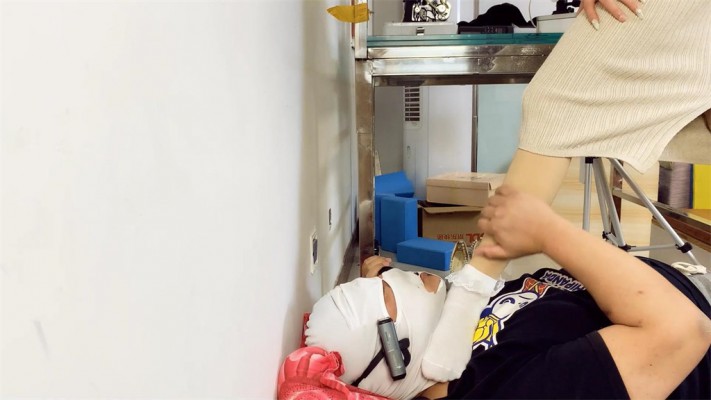 晓G的同事被查出来 是叛徒~ 晓G贴心的拿来了一个枕头 给前同事 今天她穿着帆布鞋 和漂亮的花边白色棉袜~ 来 看在多年同事的份上 给你一个枕头 会舒服一点!